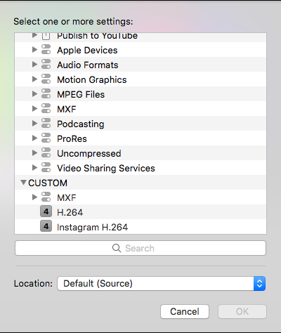 On initial use, my advice to start off would be to create some custom export presets. Alongside Compressor's built in ones, you may have certain settings you need to use more frequently, so it's a great idea to set these up and incoporate your standard delivery settings into these presets.